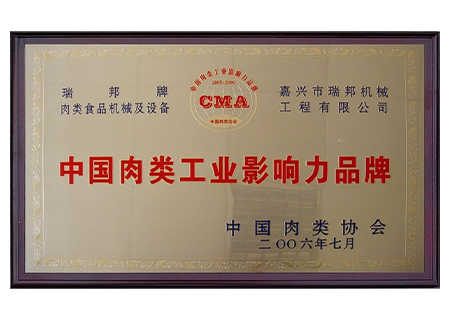 ●「中国の食肉業界のトップ10機械および機器製造企業」のタイトルを授与しました。