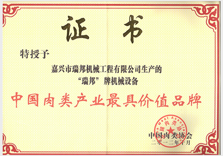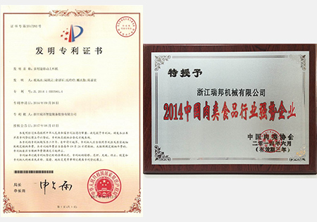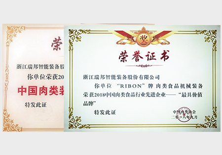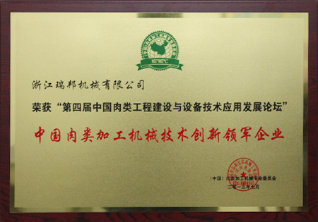 ●「中国肉加工機械の技術革新における主要な企業」として授与されました。