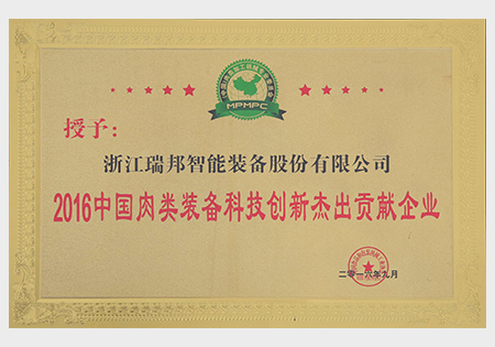 ●「中国の肉装置の傑出した貢献企業」として授与される